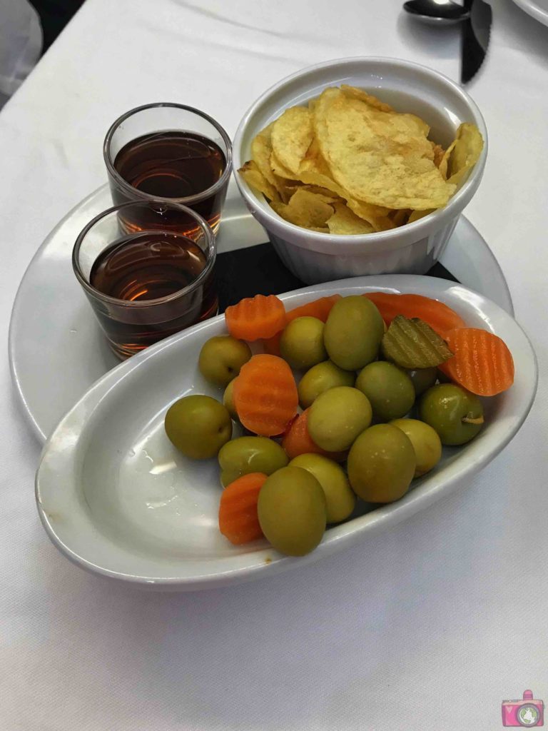 Prima di ordinare ci hanno accolto con un aperitivo a base di patatine fritte e olive mentre prima di andare a casa ci hanno offerto un bicchierino di vino dolce.