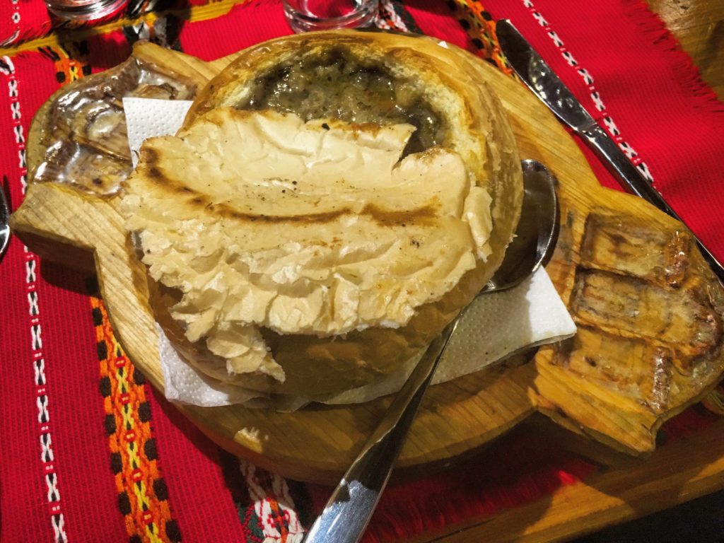 Qui io ho assaggiato la zuppa di porcini servita all’interno di una scodella fatta di pane, veramente molto buona (6,50 BGN); Matteo invece ha preso una Gabrovska topenitca, ovvero verdure miste con formaggio e uovo servite su pane piatto (6,80 BGN).